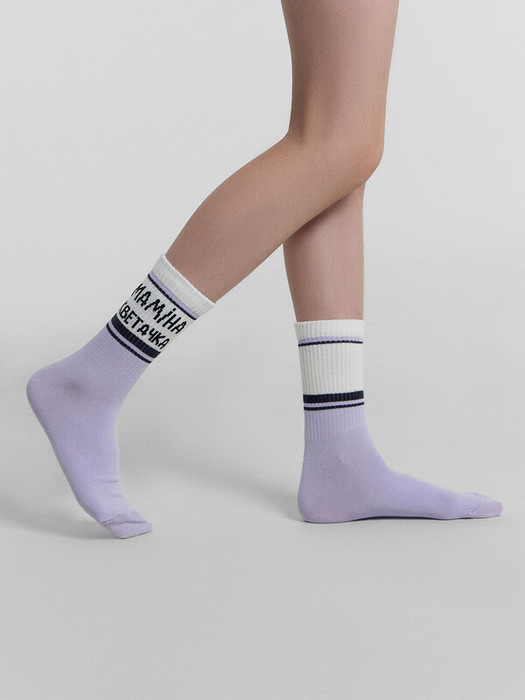 рис.2708 Детский носок гладкий с высокой резинкой и рисунком в виде надписи "МАМIНА КВЕТАЧКА"