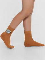 рис.2793 Гладкий детский носок с резинкой, средней высоты и объемным рисунком в виде медведя.