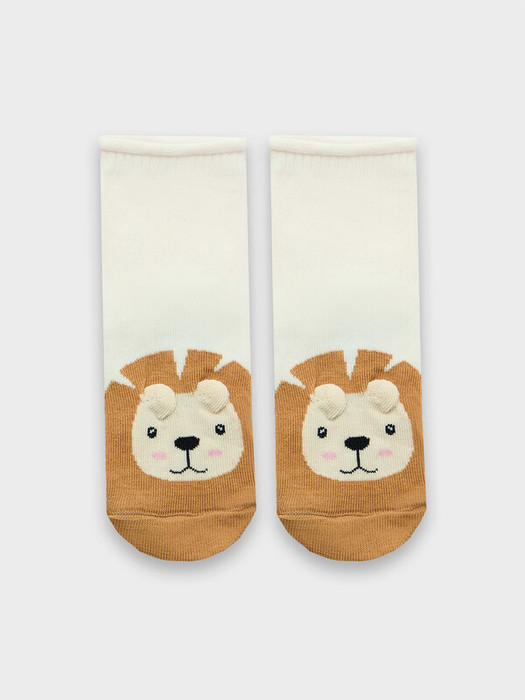 рис.2934  Детские гладкие носки без борта, с рисунком в виде львенка и цветным мыском.