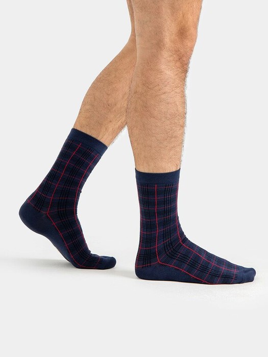 рис.1782 Классический гладкий мужской носок с узким бортом и рисунком в виде клетки.