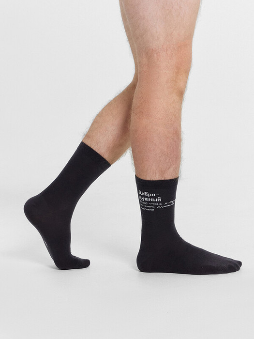 Стильные мужские носки с тонким гладким бортом и рисунком в виде надписи "ДоброДушный" — незаменимая вещь в гардеробе, самостоятельный стильный атрибут и возможность расставить акценты в любом модном образе. Носки изготовлены из гребенного хлопка — пряжи высочайшего качества, прочной и долговечной. Натуральные волокна отлично пропускают воздух, позволяя коже дышать, и впитывают влагу, поэтому носки теплые унисекс дарят ощущение комфорта в течение всего дня. Пятка и мысок усилены для защиты от протирания. Мягкая эластичная резинка не препятствует кровообращению и равномерно распределяет давление: носки надежно держатся на ноге, не сползают. Рекомендуем!