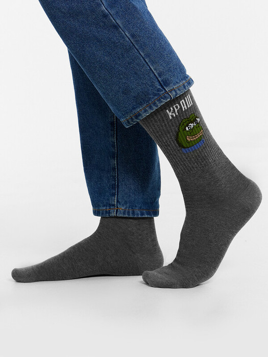 рис.3027 Мужской носок с высоким плотным бортом и рисунком в виде надписи "КРАШ".