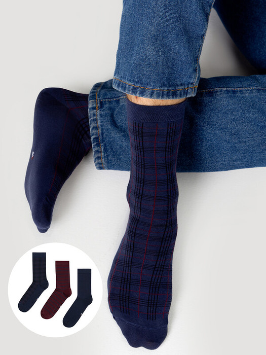 рис.1782 Мультипак из трех пар классических высоких мужских носков с узким бортом и рисунками в виде клетки и полоски.