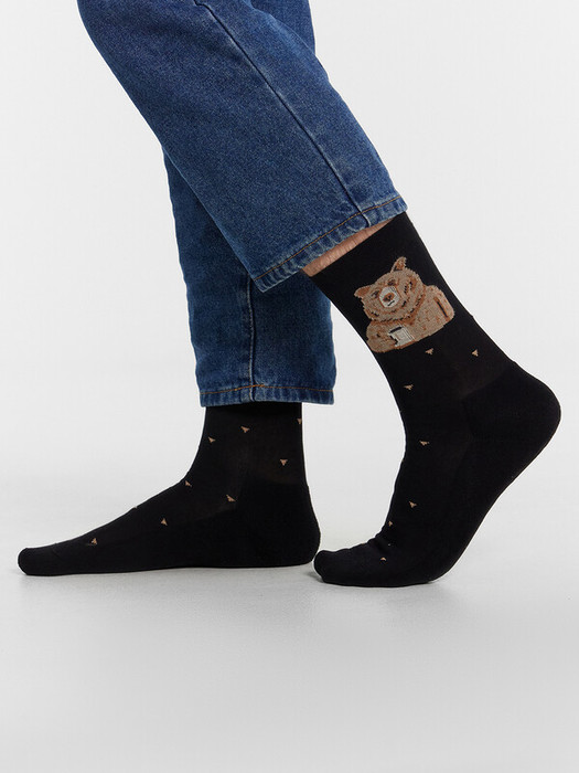 рис.2943 Мужской носок классический высокий с махровой стопой и рисунком в виде медведя.