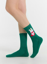 рис.3327  Женские носки высокие с плотным бортом, рисунком в виде кролика и участком пикота .