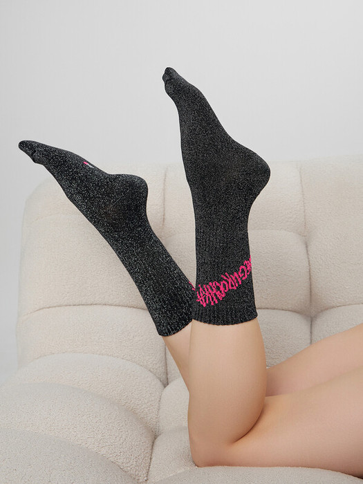 рис.3437  Женские носки высокие с плотным бортом и рисунком в виде надписи "SNEGUROCHKA" с использованием люрекса в основу.