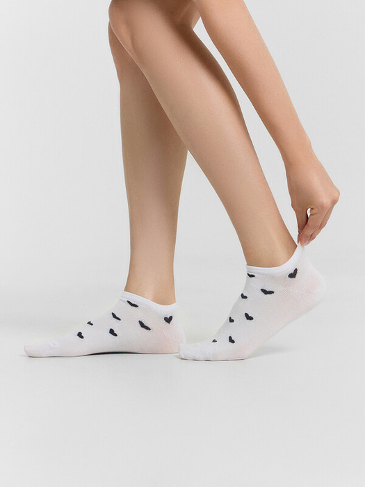 Женские укороченные носочки с узором в виде сердечек — очаровательное дополнение к гардеробу! Изготовленные из мягкого хлопка, они обеспечивают комфортную посадку, приятные тактильные ощущения и отличную воздухопроницаемость.Эластичные волокна в составе пряжи позволяют носочкам мягко облегать ногу, сохраняя форму и удобство при носке. Романтичный узор в виде сердечек добавляет игривый и нежный акцент, делая носочки не только функциональными, но и стильными. Отличный выбор для создания уютного и милого образа!