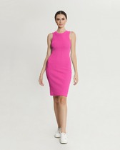 Женское полуприлегающее платье длиной выше колена из нежной и легкой вискозы. Модель отрезная по талии, внутри пояса проходит эластичная тесьма, образующая сборочки. Горловина круглая, рукава короткие и расширенные к низу. Нижний край платья украшен рюшей. На спинке застегивается на потайную молнию. Стильное платье для ваших летних образов!