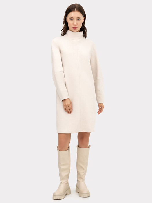 Однотонное женское платье прямого силуэта из селаника – невероятно нежного и приятного к телу трикотажного полотна. Вырез круглой формы, с воротником-стойкой. На спинке застегивается на потайную молнию. Спереди проходит интересный центральный шов. Рукава платья длинные и объемные, с горизонтальным швом примерно по центру. Длина модели – по колено. Рекомендуем для стильных образов на каждый день!