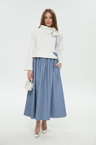 Нижняя часть платья с расклешением. Длина выше колен. Низ платья и рукавов обработан швом вподгибку.