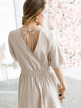 Платье женское свободного силуэта из ткани. Горловина V-образной формы. Стойка отрезная.