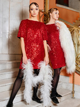 в чистый край. Горловина спинки более вырезана. Рукав втачной длинный, к низу рукав расширяется. Платье длиной выше колена.