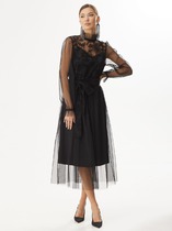 Платье женское прямого силуэта из трикотажного полотна селаник. Горловина круглой формы, с притачным воротником с отрезной стойкой из поплина и застежкой на пуговицу. Плечо слегка спущено, пройма углублена. Рукав втачной, длинный, по низу с отрезной манжетой из селаника. Платье длиной чуть выше колена.