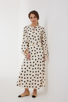 Рукав втачной, узкий, длинный. Низ рукава и платья обработаны на микрооверлоке.