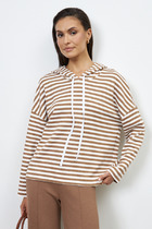 Горловина круглой формы, обтачка горловины из основного полотна. Шов горловины спинки обработан бейкой из основного полотна.