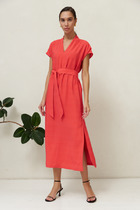 Платье прямое свободное, длиной мини. Горловина круглая со стояче-отложным воротником. Рукава втачные длинные, присбореные по низу на эластичную тесьму (внутр. 10мм 10RV). Линия плеча спущена. Платье по талии присборено на шляпную резину (т. эластичн. 2,8мм SFKR-1) с фиксаторами (SFFKR-1). По переду обработана центральная застежка на молнию. Борта обработаны подбортами. Нижний срез платья обработан швом вподгибку.