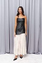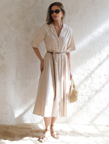 Платье изготовлено из ткани. Платье А-силуэта, длиной макси. Горловина V-образной формы, углубленная. Горловина и проймы окантованы бейкой из основного полотна. Перед и спинка со средним швом. В боковых швах обработаны карманы. Нижний срез обработан швом вподгибку.
