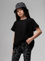 Поло для девочек свободного силуэта с воротником из довяза. На детали переда обработана планка с 3 пуговицами d=10mm, горловина круглой формы. Плечо спущено, пройма слегка углублена. Рукав втачной, короткий.