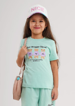 Поло для девочек свободного силуэта с воротником из довяза. На детали переда обработана планка с 3 пуговицами d=10mm, горловина круглой формы. Плечо спущено, пройма слегка углублена. Рукав втачной, короткий.