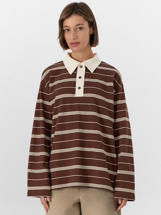 Воротник из основного материала мягко лежит на коже, а внутренние швы скрыты бейкой, чтобы избежать натирания. Отрезная планка и четкие линии полоски добавляют модели стильный акцент. Поло сшито из дышащей ткани, которая не вызывает раздражения и подходит для длительной носки.
