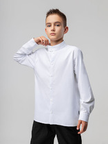 Сорочка верхняя для мальчиков прямого силуэта с воротником. По переду обработана застежка на пуговицы d=10mm и петли. Рукава короткие, втачные, слегка спущены. Нижние срезы изделия и рукавов обработаны швом в подгибку.