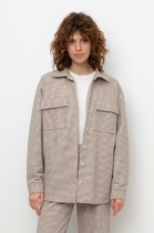 Блузка женская свободного силуэта из ткани. Блузка с цельнокроеной планкой и центральной застежкой на пуговицы. На левой детали переда накладной карман.