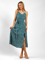 Сарафан А-силуэта, длиной мини. Горловина круглой формы. Проймы углублены. Горловина и проймы обработаны обтачками из основного полотна. По переду застрочены вытачки. Спинка с центральным швом и застежкой на потайную молнию. Нижний срез обработан обтачкой из основного полотна.