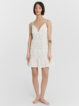 Сарафан женский А-силуэта, укорочённый, с отрезными чашками. Под грудью кружевная тесьма Antik Dantel 8844 (18% EL, 82% PA, 2,7см). Чашки с подкладкой из кулирного полотна. Бретели 9мм с регуляторами 10мм. Верхний срез спинки обработан в подгибку с резиной 8RV. Низ обработан отрезной рюшей. Рюша обработана швом в подгибку.