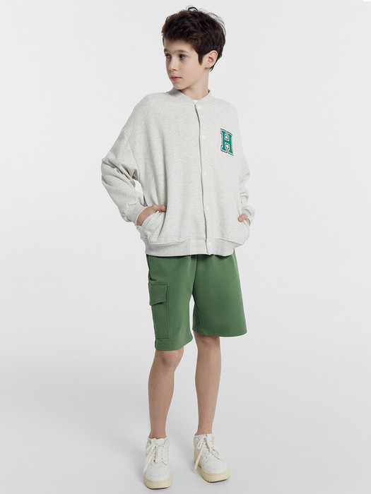 Шорты карго прямого силуэта из текстильного полотна. Посадка средняя. Длина выше колена. Пояс цельнокроеный  с эластичной тесьмой и шнуром внутри. По поясу выполнены три декоративные строчки. На передних деталях брюк настрочен один карман с клапаном, обработаны карманы с наклонным входом от боковых швов. Низ изделия обработан швом в подгибку.