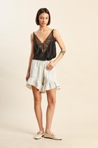 Женские шорты из качественной экокожи. Силуэт свободный, расширенный. Пояс с эластичной тесьмой внутри и рюшей сверху. Есть удобные боковые карманы. Имитация гульфика. Длина шортов – выше колена. Линия талии высокая. Стильные шорты для повседневных образов!