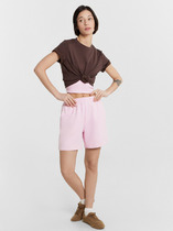 Шорты с посадкой на талии свободного силуэта. Пояс цельнокроеный с резиной внутри 30RV. По центру пояса пробиты петли, протянут шнур кругловязанный 5 мм 5KXWC-1. В боковых швах карманы. Низ изделия застрочен швом в подгибку.