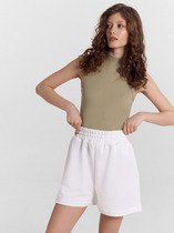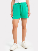 Женские шорты-бермуды из плотной и гладкой экокожи. Силуэт прямой, чуть расширяется к низу. Длина чуть выше колена. Пояс с эластичной тесьмой внутри. Есть удобные боковые карманы. Строчка на передней детали имитирует гульфик. Особенность модели – необработанные "сырые" срезы. Стильно!