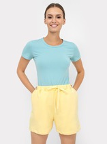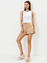Стильные шорты свободного силуэта, чуть расширенного к низу. Выполнены из нежного текстиля, в основе которого хлопок. Линия талии завышена. Передняя часть шортов украшена рельефными швами и функциональными накладными карманами. Пояс с эластичной тесьмой внутри, регулировочным шнурком-завязкой и рюшей по верхнему краю. Рекомендуем!