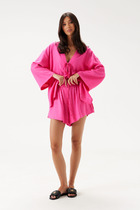 Шорты женские свободного силуэта из ткани. На детали переда карманы с отрезным бочком.