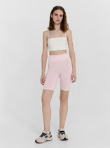 Шорты изготовлены из полотна - Интерлок. Шорты облегающего силуэта с высокой линией талии, короткие. Пояс широкий отрезной фигурный с эластичной тесьмой внутри. Боковой шов перенесен на деталь переда. На задних половинках отрезная фигурная кокетка.