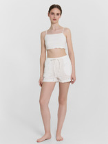 Мини-шорты свободного силуэта из легкого трикотажного футера. Высокая посадка на талии, эластичная тесьма в поясе, регулировочный шнурок-завязка и удобные боковые карманы – комфортный минимализм!