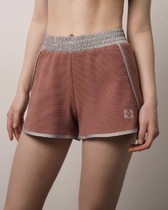 Мини-шорты свободного силуэта из легкого трикотажного футера. Высокая посадка на талии, эластичная тесьма в поясе, регулировочный шнурок-завязка и удобные боковые карманы – комфортный минимализм!