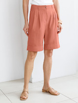 Шорты свободного силуэта, короткие.  Пояс цельнокроеный, с втаченной эластичной тесьмой 40RV. Низ шорт обработан швом в подгибку.