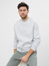 Теплый мужской свитшот из трикотажного футера с нежным подчесом. Силуэт прямой, вырез классический – круглый, не глубокий. Рукава длинные, на манжетах из рибаны. Спущенная линия плеча дарит свободу движений. Пояс, проходящий по нижнему срезу, также сделан из рибаны. Отличный свитшот для городских образов.