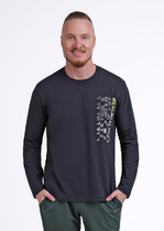 Рукав втачной, длинный с отрезными манжетами из рибаны. Линия плеча слегка спущена.