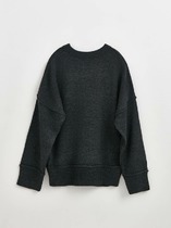 Свитшот прямой, свободный. Горловина круглой формы обработана обтачкой из рибаны. Рукава втачные длинные, с отрезными манжетами. Плечо спущено. По низу отрезной пояс. Пояс и манжеты из рибаны.