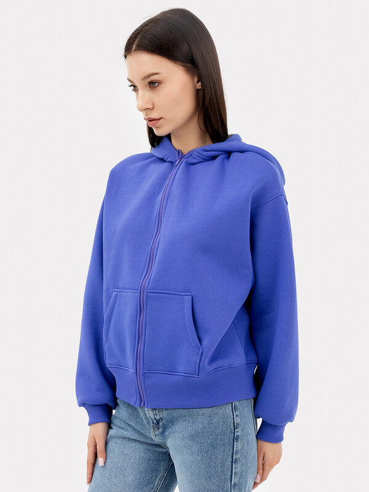 Комфортная и уютная женская толстовка в спортивном стиле. Выполнена из футера с теплым и нежным подчесом. Силуэт свободный – оверсайз, длина до середины бедер. Спущенная линия плеча и углубленная пройма дарит свободу движений. Рукава длинные и свободные, с манжетами. Капюшон просторный, есть удобный карман-кенгуру. Спереди толстовка застегивается на молнию. Рекомендуем!