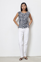 Горловина и проймы окантованы широкой бейкой из основного полотна.