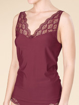 Топ женский из микрофибры на тонких бретелях из основного полотна с эластичной тесьмой внутри.