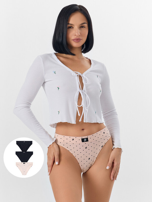 Совместные покупки Магнитогорск Женская одежда Трусы — Mark Formelle ТРУСЫ ЖЕНСКИЕ (3ШТ.) 412542-3 412542-3 горошек на бежевом 55144
