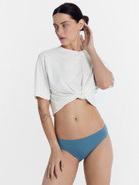 Трусы женские, средняя линия  талии, силуэт - бразилиано. Передняя и задняя детали выполнены из рибаны. Верхний срез трусов обработан бейкой поперечной из рибаны, внутри жилка 6мм. Нижние срезы обработаны бейками поперечными из рибаны. Подкладка ластовицы из хлопка, верхний срез ластовицы притачан к детали из рибаны (с изнаночной стороны имитация мужского гульфика, с лицевой стороны декоративные строчки).