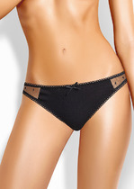 Трусы женские со средней посадкой силуэта «бразилиана». Передняя деталь с наклонными рельефами, центральная часть выполнена из микрофибры, а бочки- из эластичной сетки с флоком. Подкладка ластовицы из кулирного полотна отлетная по переднему краю. Нижние срезы по полотну обработаны в 2 приема эластичной тесьмой 6 мм (жилка тканая WT4-6).