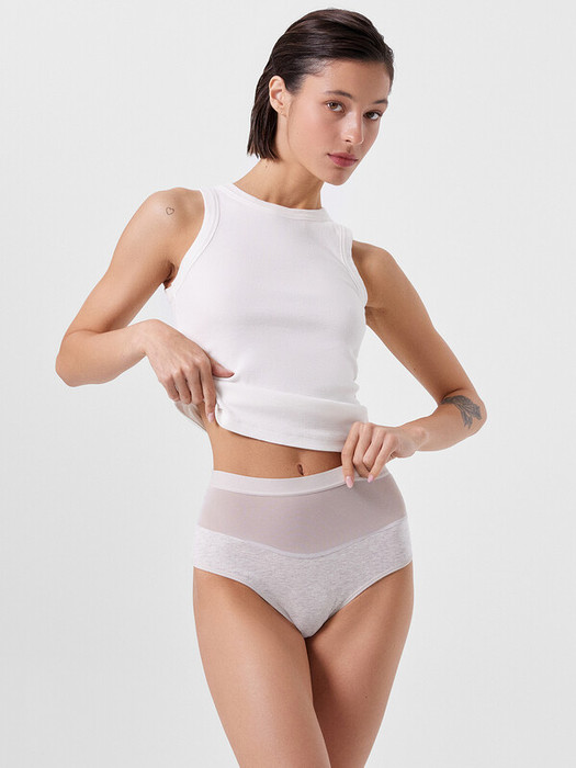 Трусы женские макси с высокой линией талии из трикотажного кулирного полотна с эластичной сеткой.