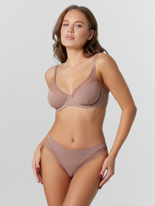 Трусы женские со средней посадкой силуэта «слип». Передняя центральная деталь из микрофибры, боковые передние детали из эластичной сетки, со сгибом по ножкам. Подкладка ластовицы из кулирного полотна отлетная по переднему краю.