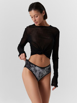 Трусы женские корректирующие с высокой посадкой, из эластичного кружева и трикотажного полотна микрофибры. Верхние детали из микрофибры соединены между собой ширителем, нижние детали из кружева. Верхняя часть двойная, со сгибом по талии. Подкладка ластовицы выполнена из кулирного полотна, отлетная по переднему краю. По срезам ластовицы жилка 6мм. внутри (WT4-6).